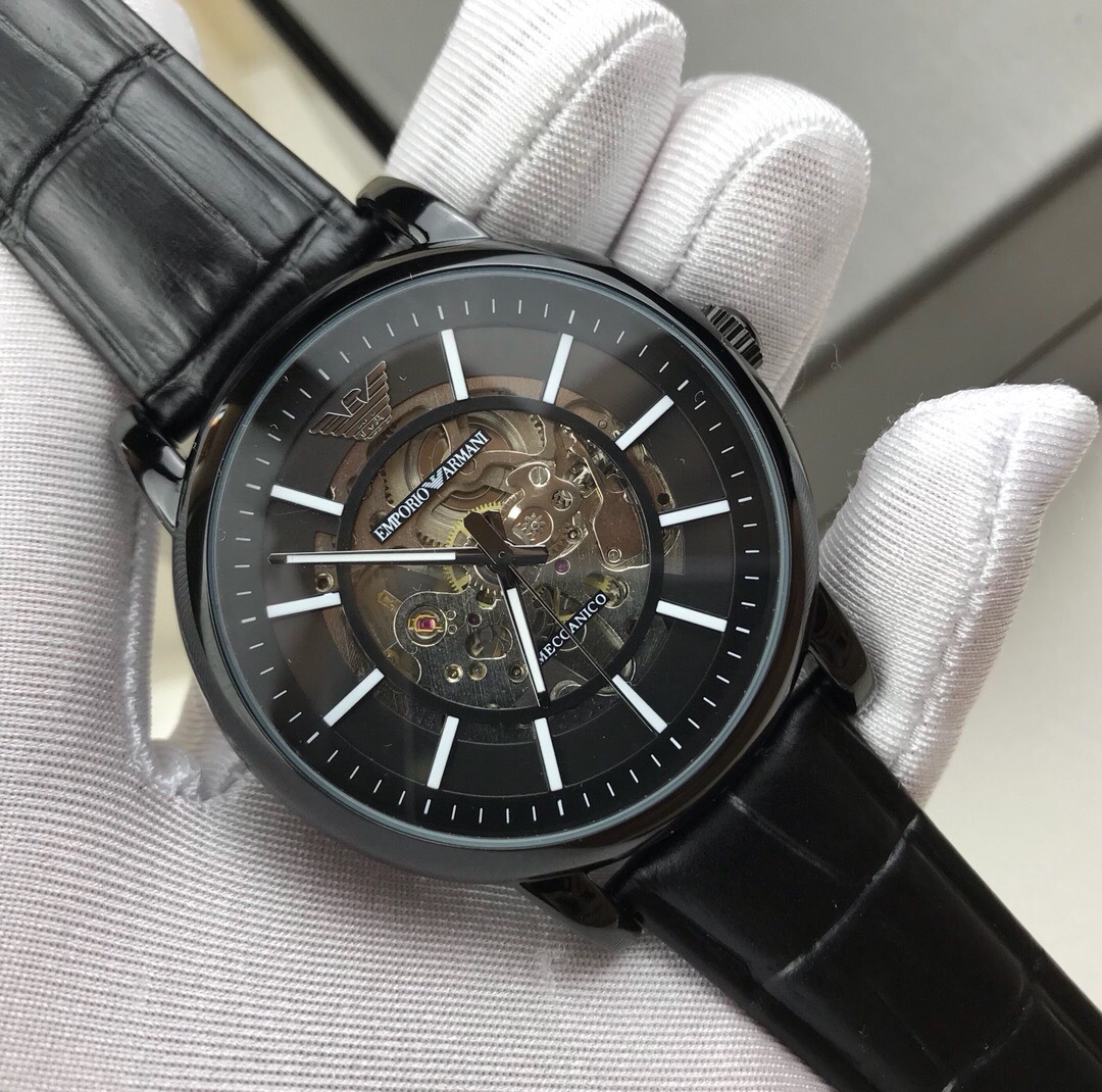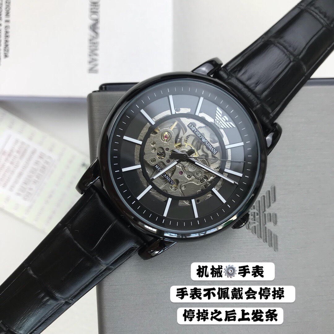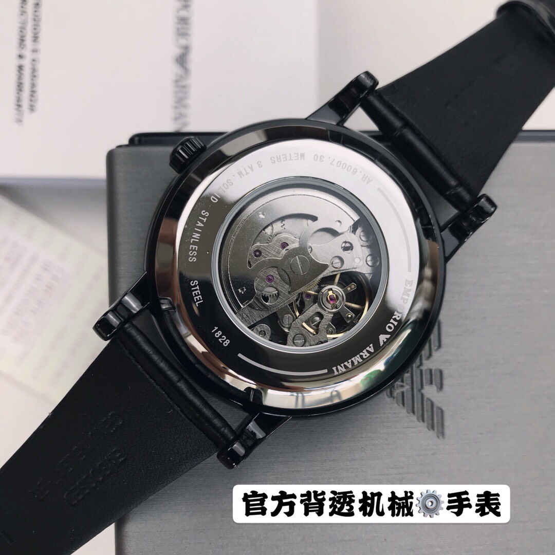 Armani Hollow Business Automation Men's Watch Model AR60008 🔻 【 Channel company goods 】 Hollow flywheel perspective window, visible internal mechanical circulation in minutes. Black calf belt, automatic mechanical movement, mineral glass mirror surface, size 43mm 🔻 The complete packaging movement is guaranteed for one year without human error