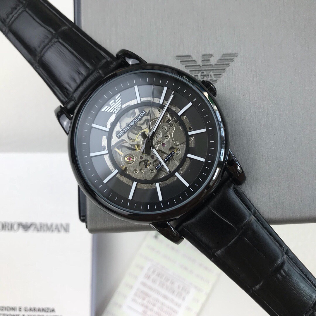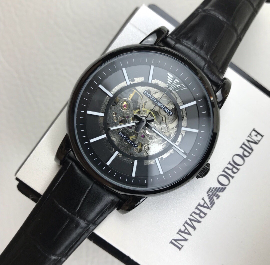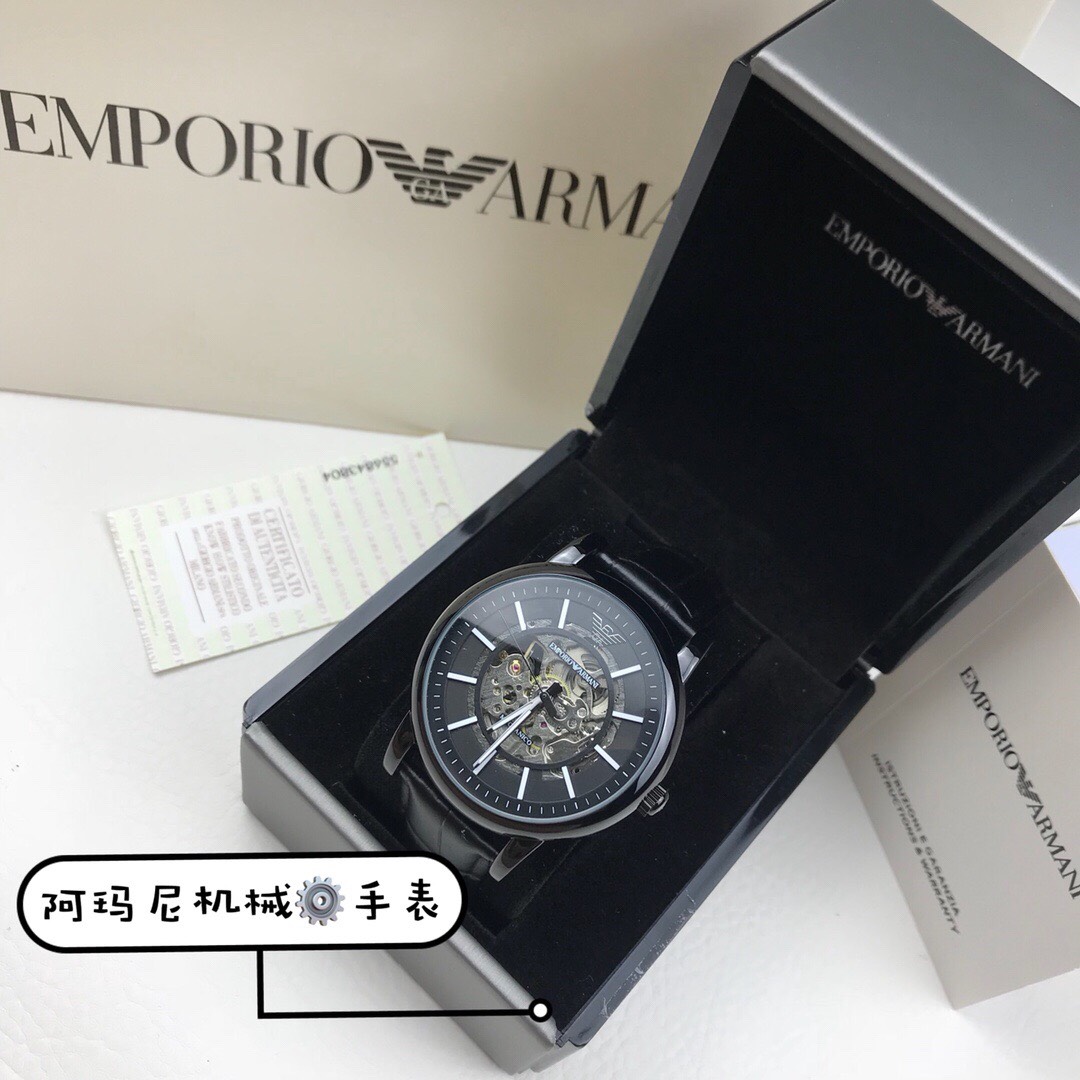 Armani Hollow Business Automation Men's Watch Model AR60008 🔻 【 Channel company goods 】 Hollow flywheel perspective window, visible internal mechanical circulation in minutes. Black calf belt, automatic mechanical movement, mineral glass mirror surface, size 43mm 🔻 The complete packaging movement is guaranteed for one year without human error