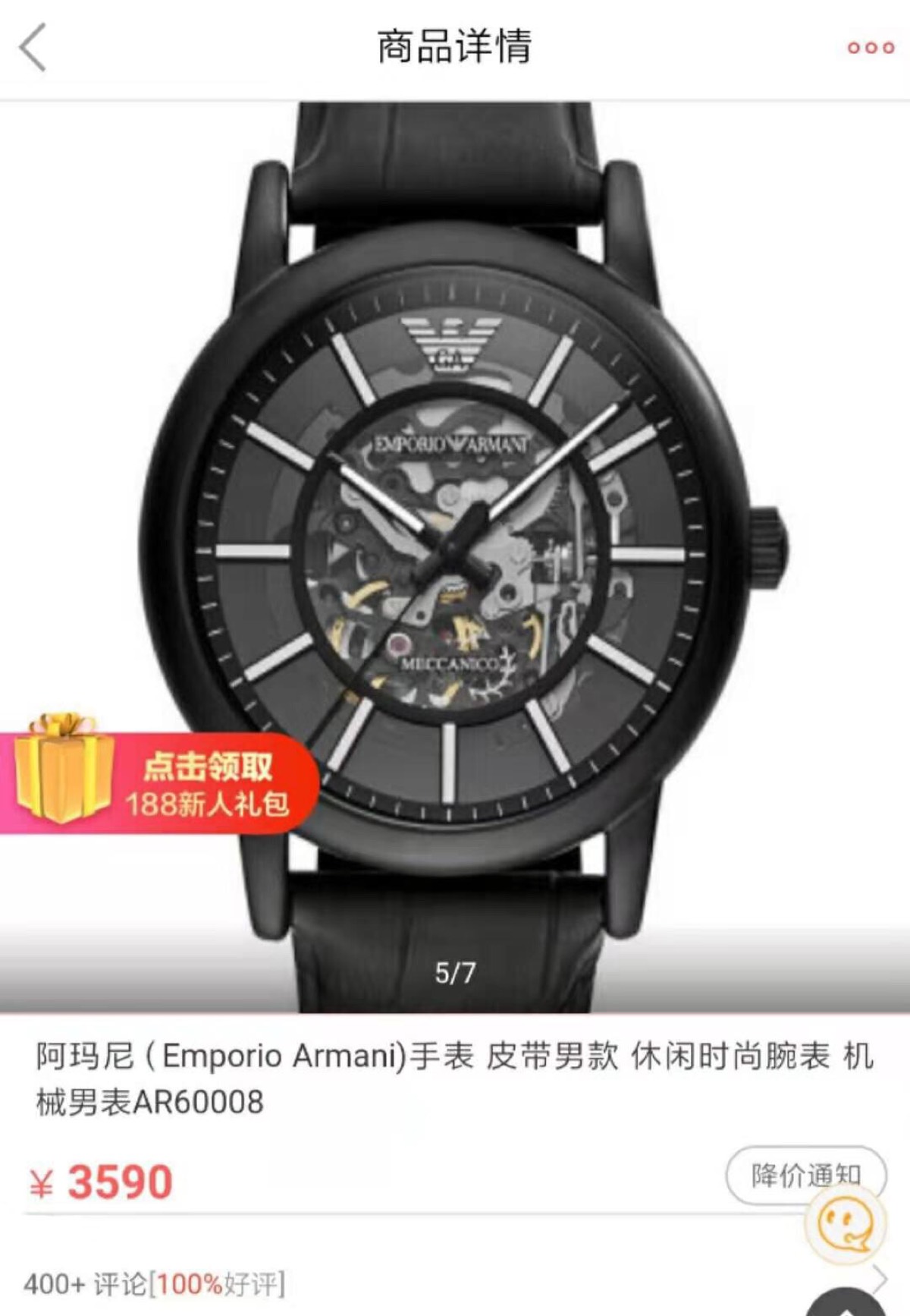 DetailArmani Hollow Business Automation Men's Watch Model AR60008 🔻 【 Channel company goods 】 Hollow flywheel perspective window, visible internal mechanical circulation in minutes. Black calf belt, automatic mechanical movement, mineral glass mirror surface, size 43mm 🔻 The complete packaging movement is guaranteed for one year without human error