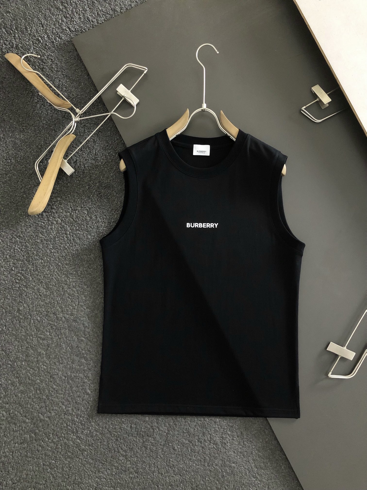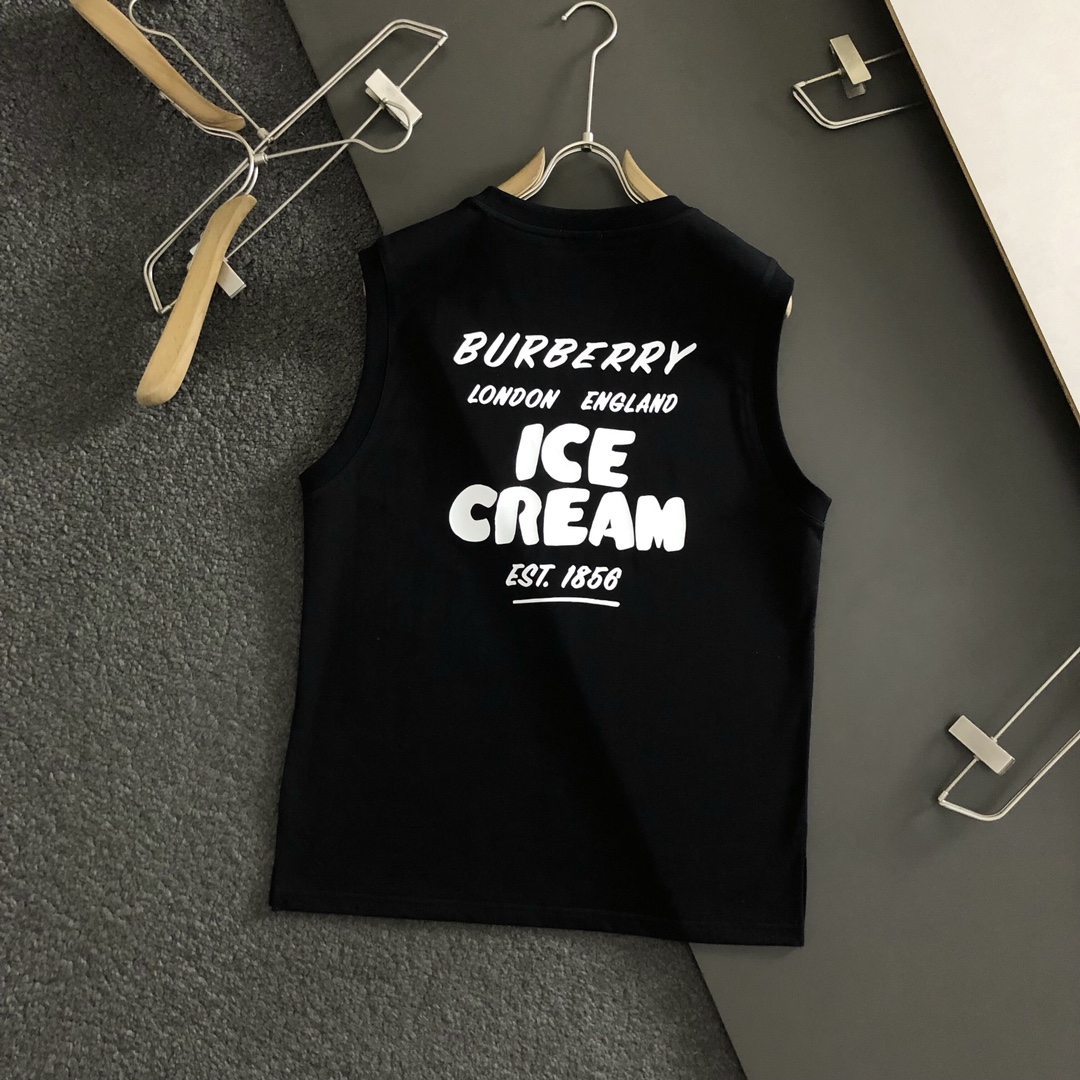 • New  Burberry Top Black Three dimensional Letter Offset Printing Process Counter Fabric Sleeveless Round Neck Vest