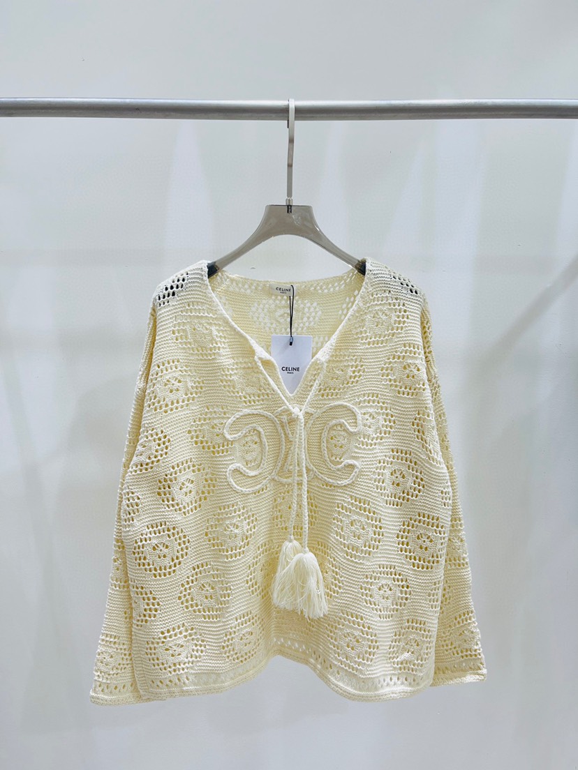 Home / New Celine Early Autumn New V-Neck Triumphal Hollow Tassel Knit Top