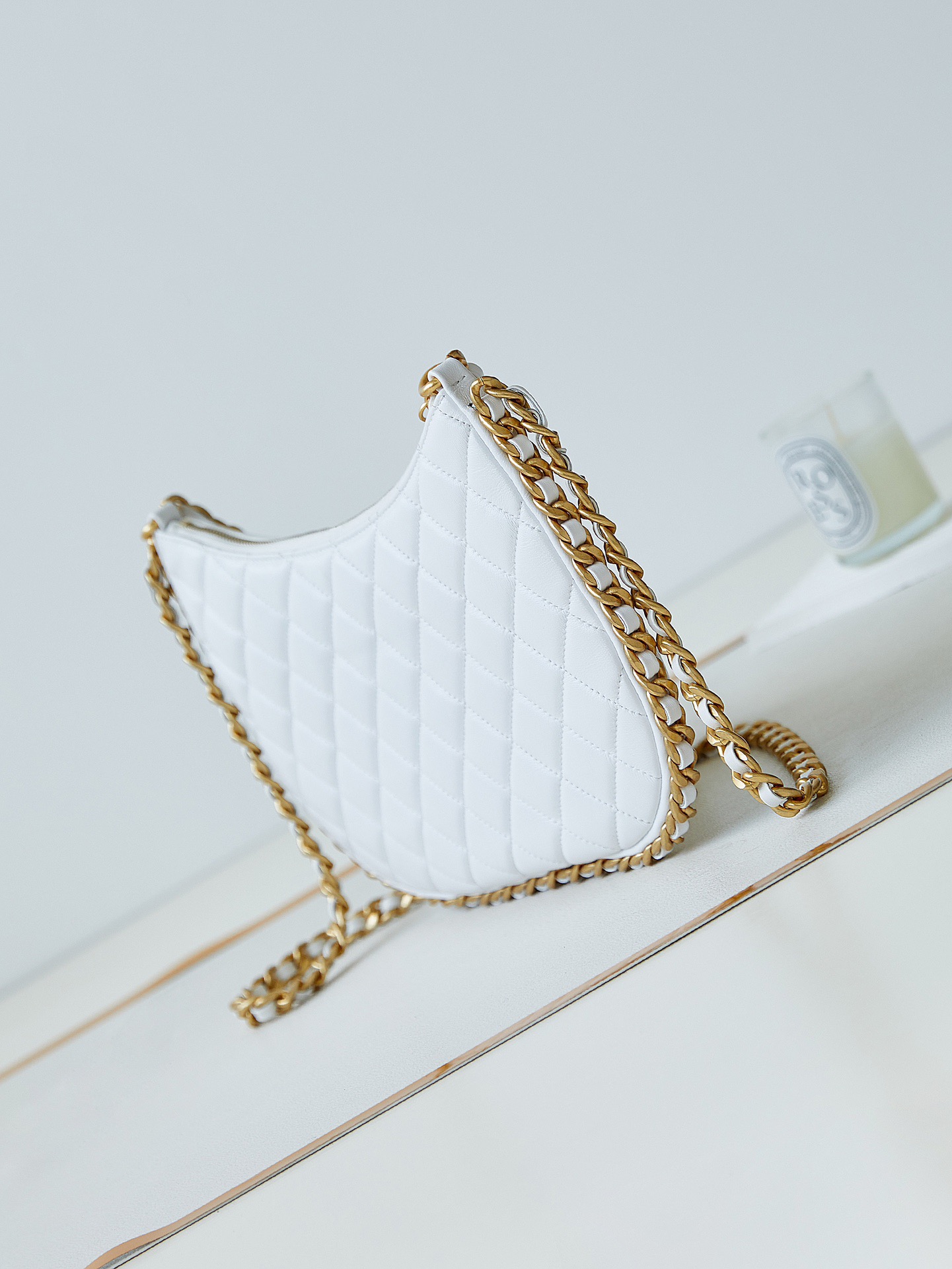 New design hobo~ Bag edge inset with exquisite woven chain unique process shows that fashion makes girls confident bloom in different occasions, gold hardware embellishment adds a gorgeous sense to the bag, Exudes a noble temperament small size of the single chain design, simple and yet exquisite ~ large size of the double chain design is more fashion sense they are exquisite every detail ~ also too charming! This quality, it's amazing size:18×29×2cm