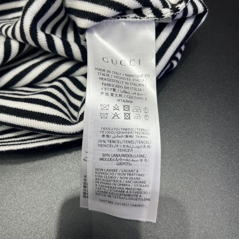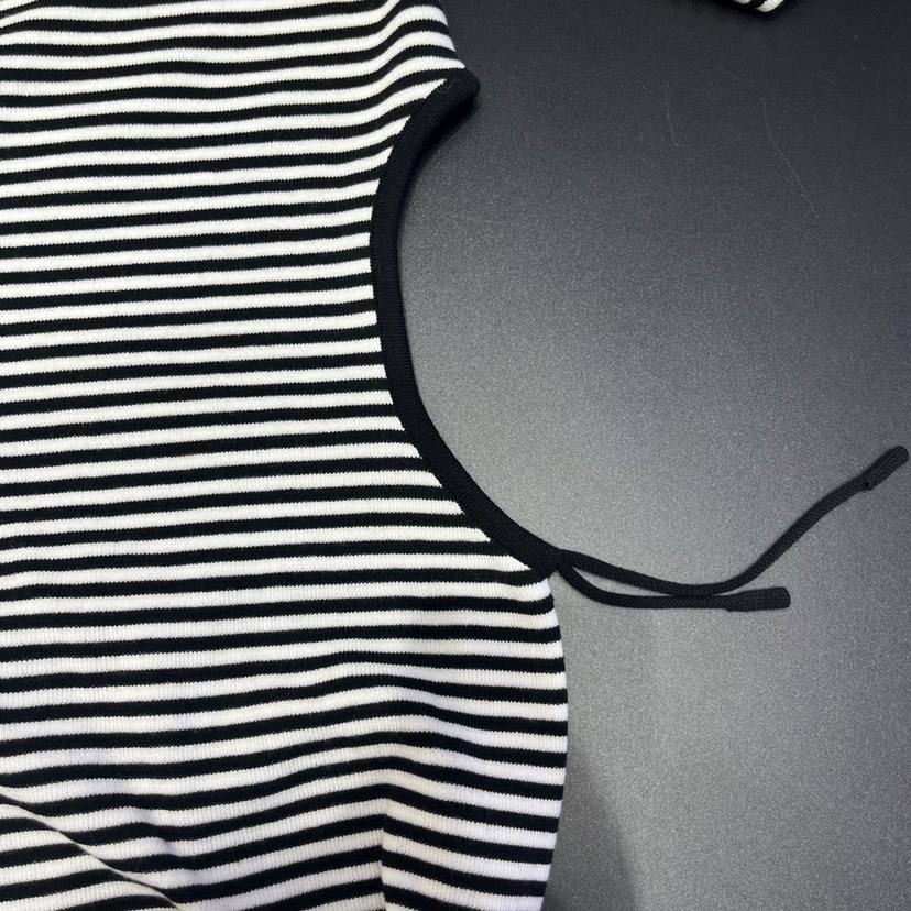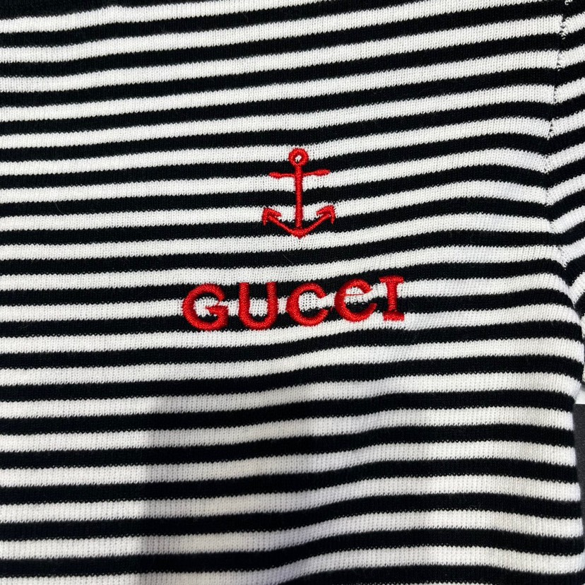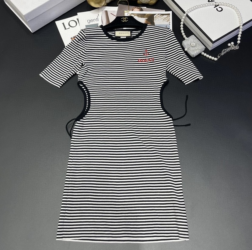 DetailGucci23 Spring/Summer New Colorblock Stripe Hollow Waist Letter Knitted Dress Color: Black Size: s.m.l