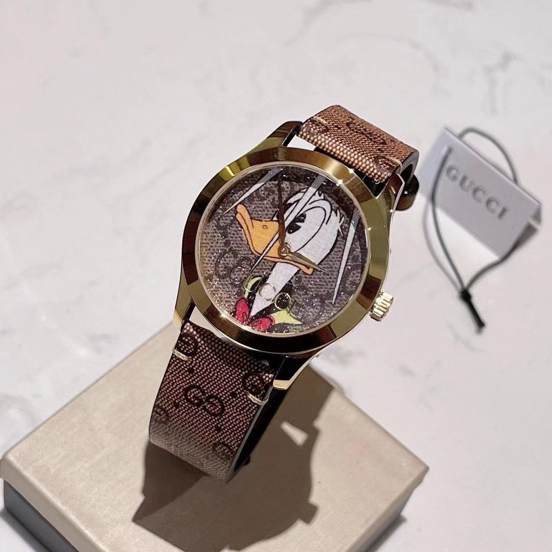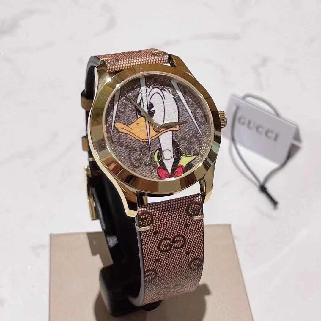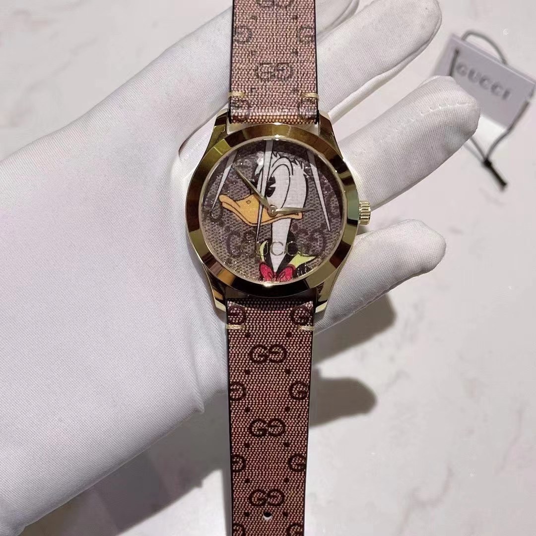 DetailGucci g-timeless series watch ⌚ The model ya1264167 incorporates innovative and unique prints and patterns every season, bringing a refreshing design. The legendary Disney animated characters inject a sense of whimsy into the brand's latest series. Decorated with vivid Donald Duck print patterns