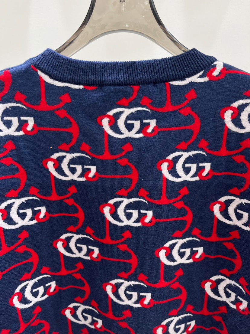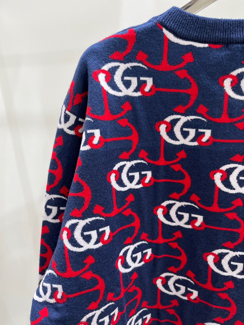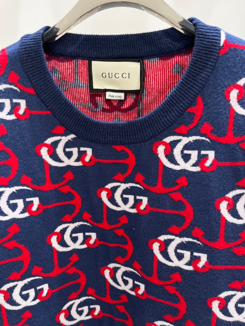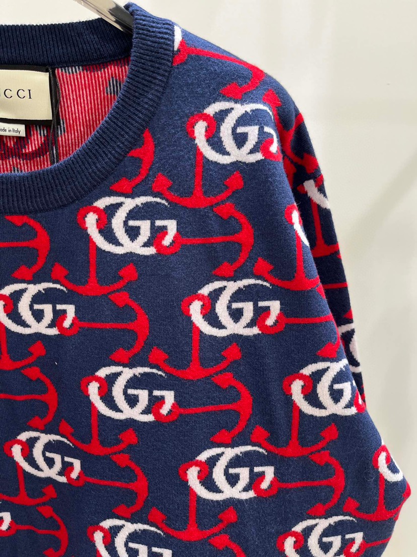 New Gucci Round Neck Contrast Double G Jacquard Knit Long Sleeve