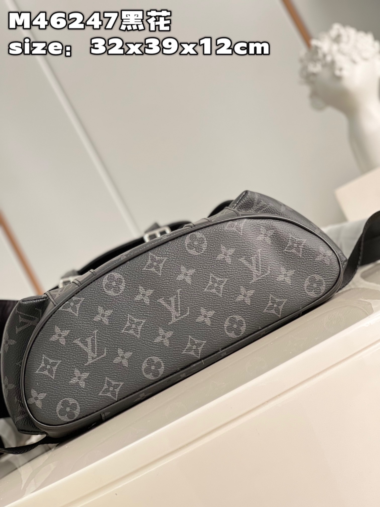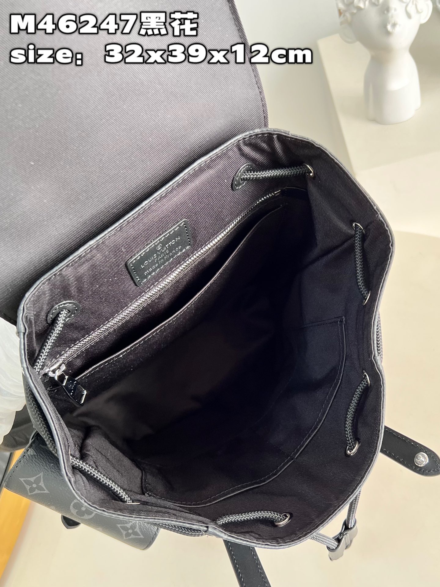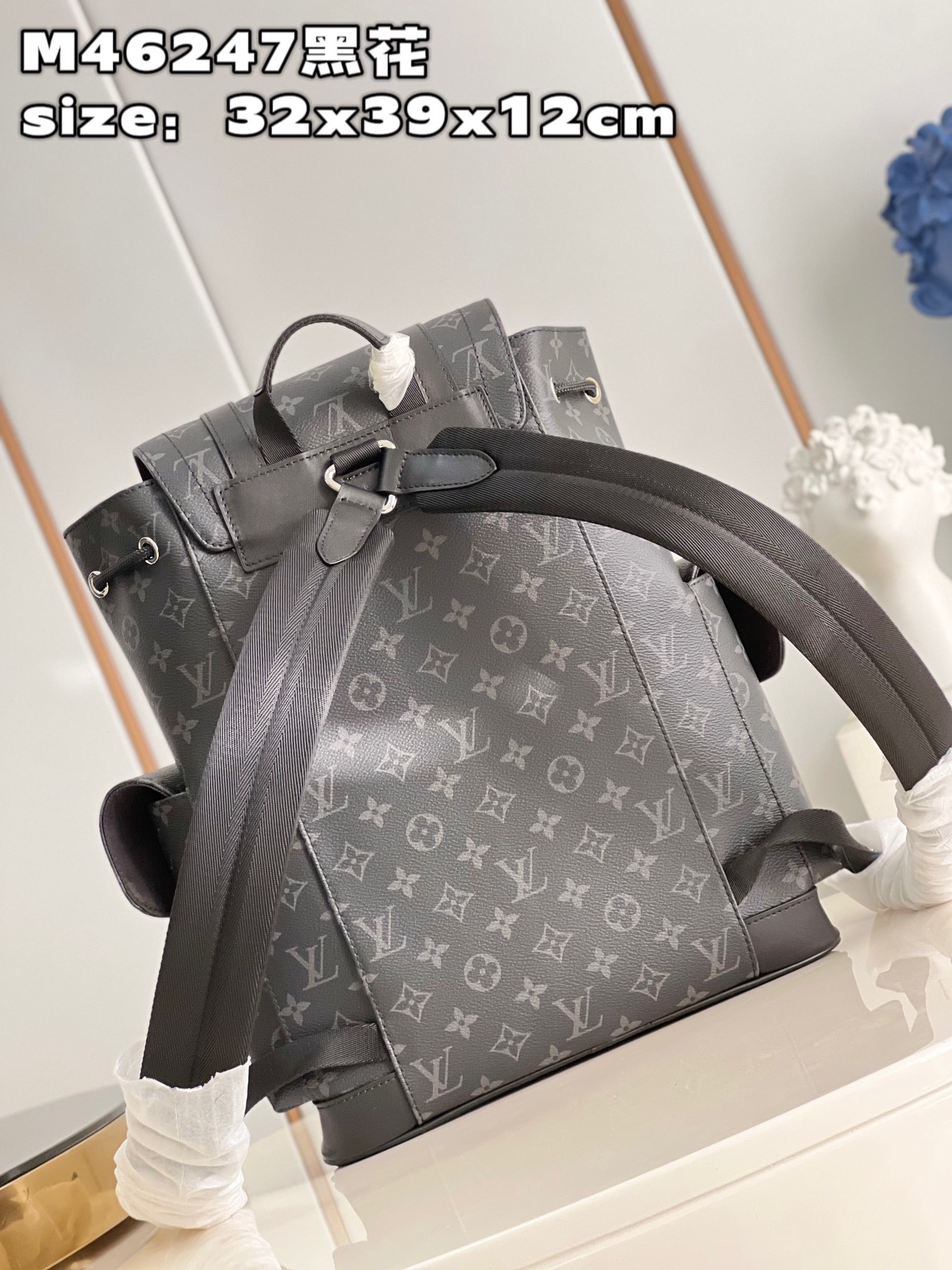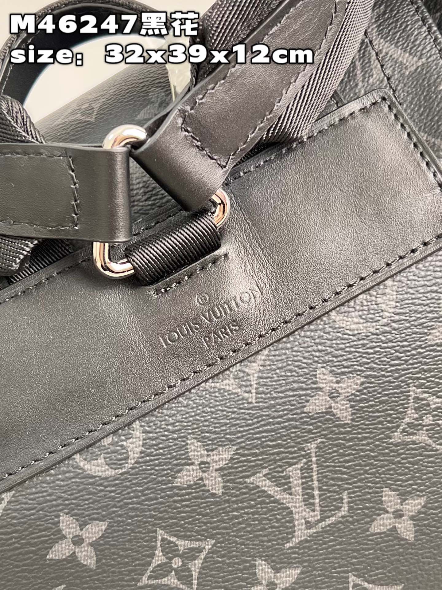 DetailP780 【 Exclusive live shot of M46247 black flower 】 M41379 small This Christopher small backpack combines Monogram eclipse reverse canvas and leather trim, presenting the rough texture of a hiking bag in a slightly smaller size. The side pocket is easy to access and store accompanying items, and a leather flip with a snap closure ensures secure storage. Dimensions: 32 x 39 x 12 cm (length x height x width)