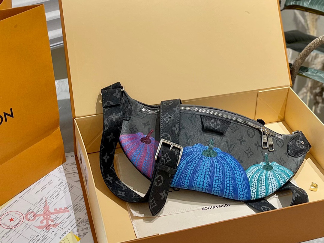 Lv Yayoi Kusama Yasheng Co branded Series Colorful Pumpkin Pattern Chest Bag Waist Bag Size 43 * 16cm Unisex