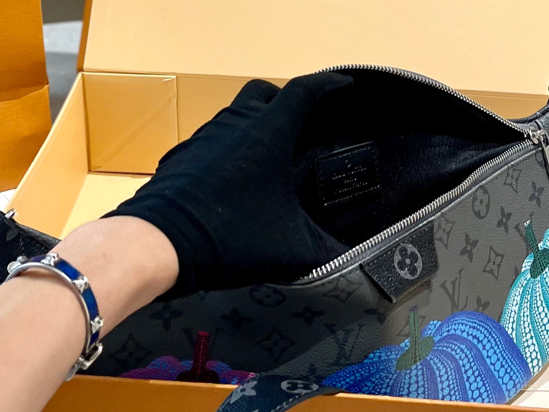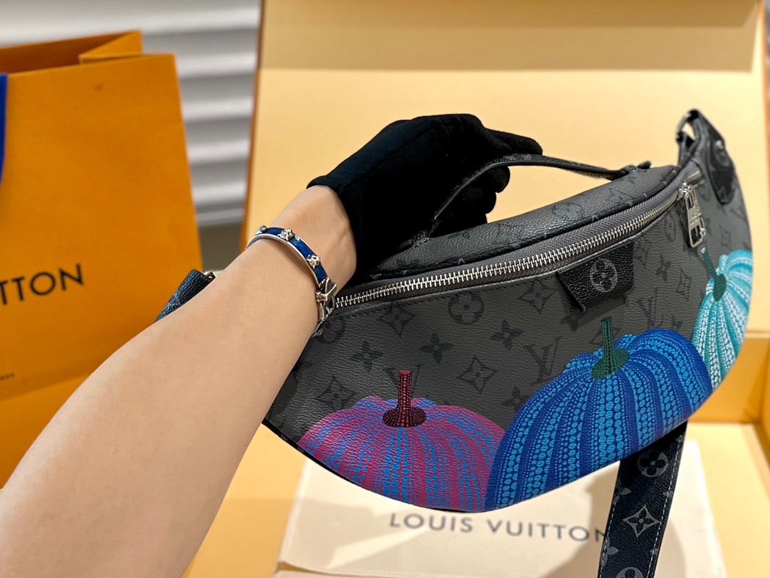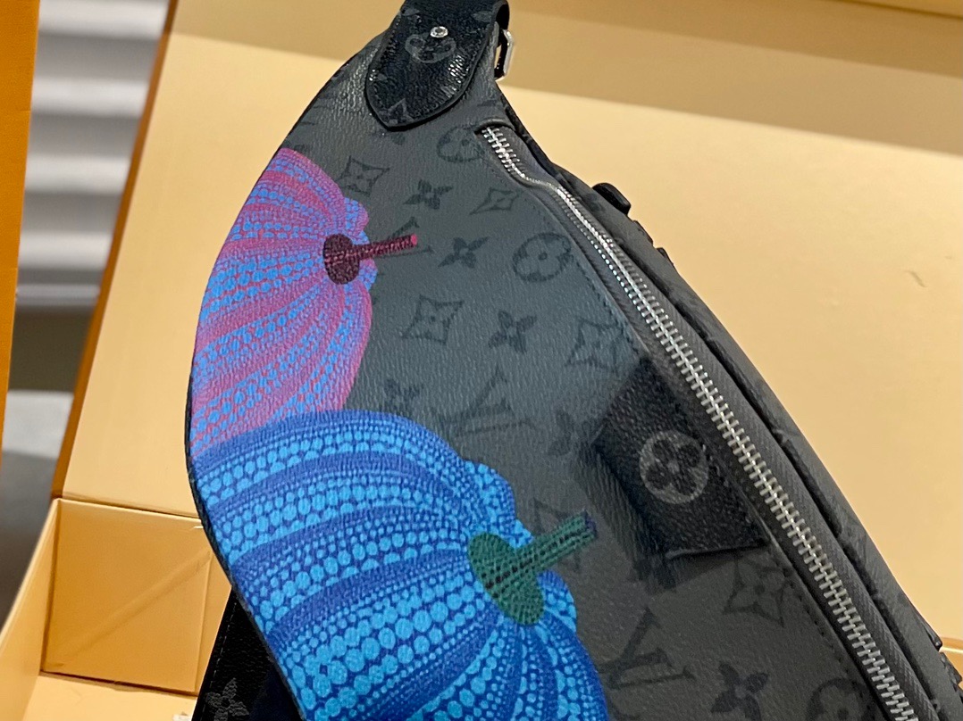DetailLv Yayoi Kusama Yasheng Co branded Series Colorful Pumpkin Pattern Chest Bag Waist Bag Size 43 * 16cm Unisex