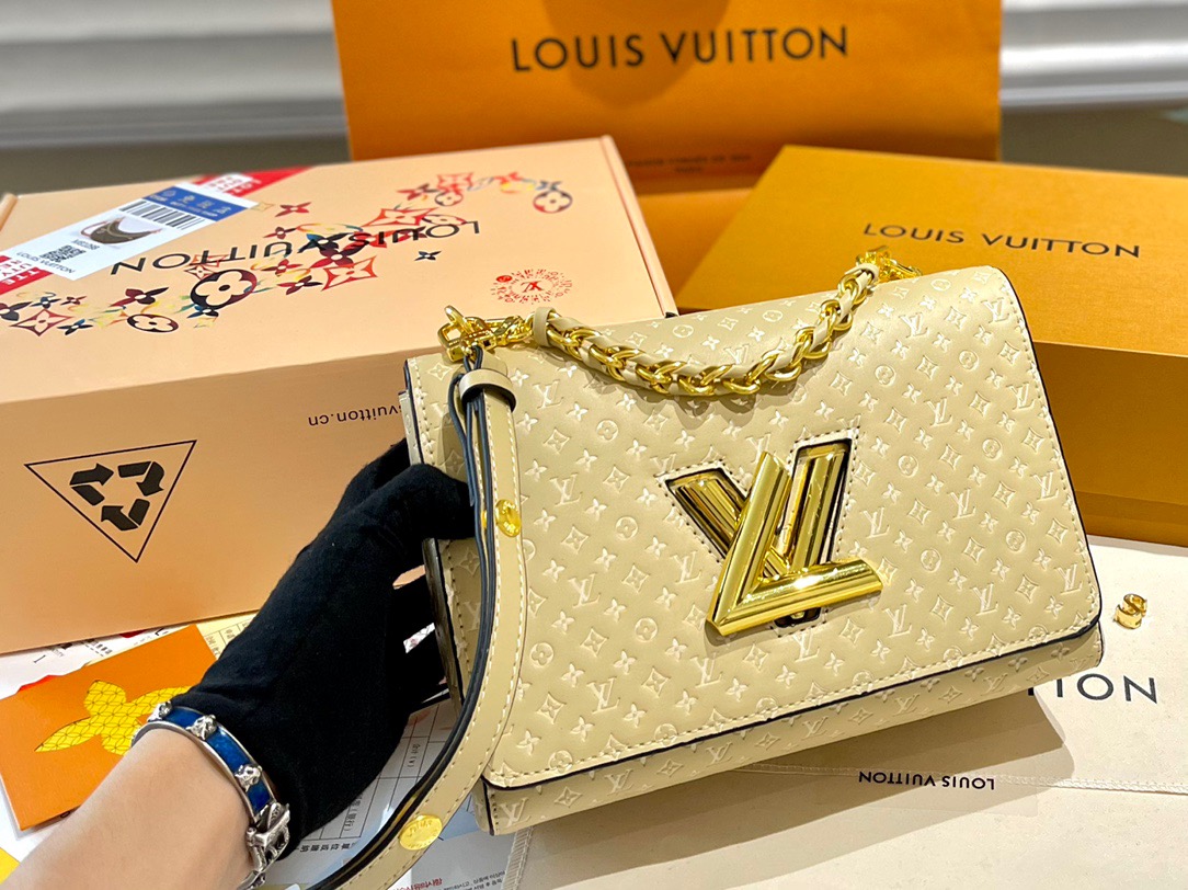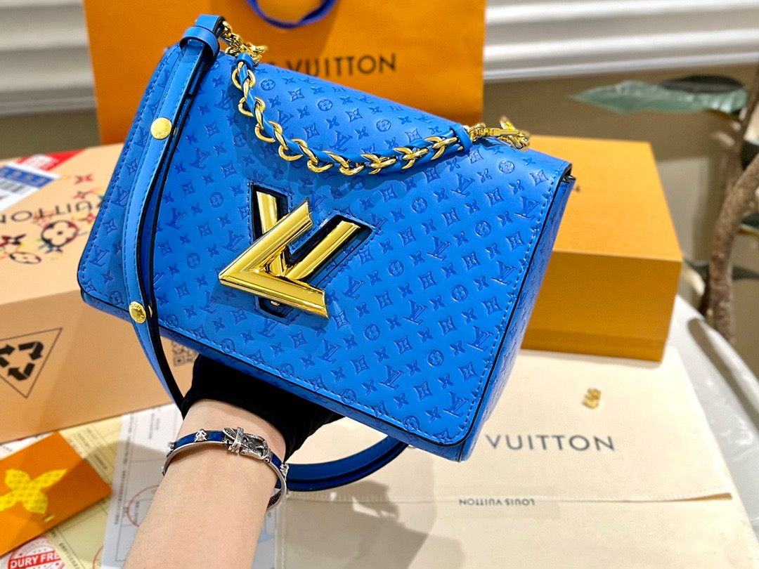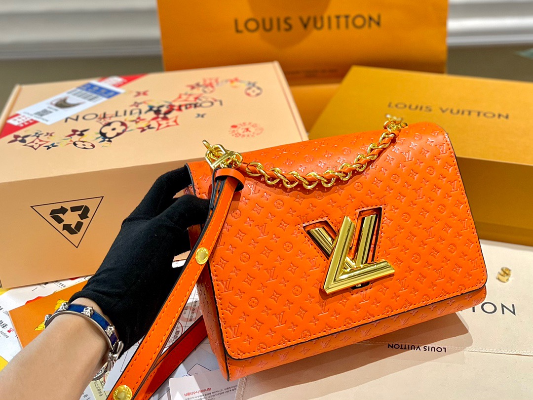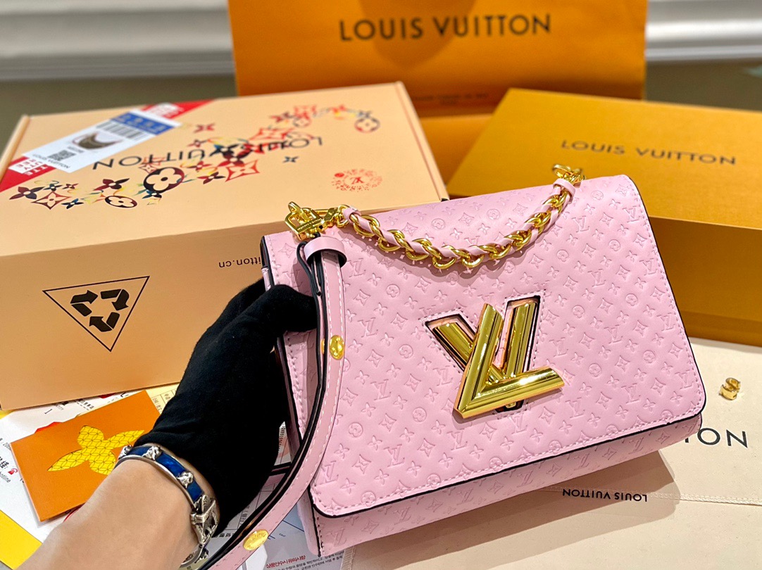 LV Twist Embossed Old Flower, Latest and Most Popular Twist Shipped 💃 Present a neoclassical twist medium sized handbag. Create a focused design: the flip is super value, lively and free to slide, which can change with your heart no matter whether you are on the shoulder or on the back, or day and night occasions. Compact appearance, unique curved base increases handbag capacity [strong] Adjustable chain suitable for diagonal or elegant shoulder and back [strong] Size: 23