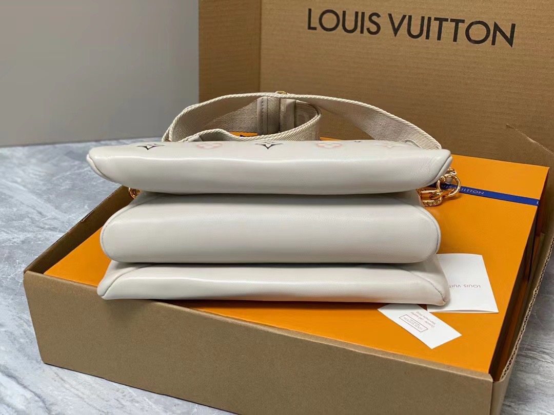 The new season's new cousin small handbag m57791 cousin small tricolor handbag from the p950 m22954 white full leather chain bag series has emerged in soft colors this summer. Sheepskin leather is embossed with a Monogram pattern, woven into the chain by the pool of silk scarves, bringing a trendy atmosphere to your face. Removable and adjustable leather shoulder straps add styling options. Detailed features 26 x 20 x 12 cm.