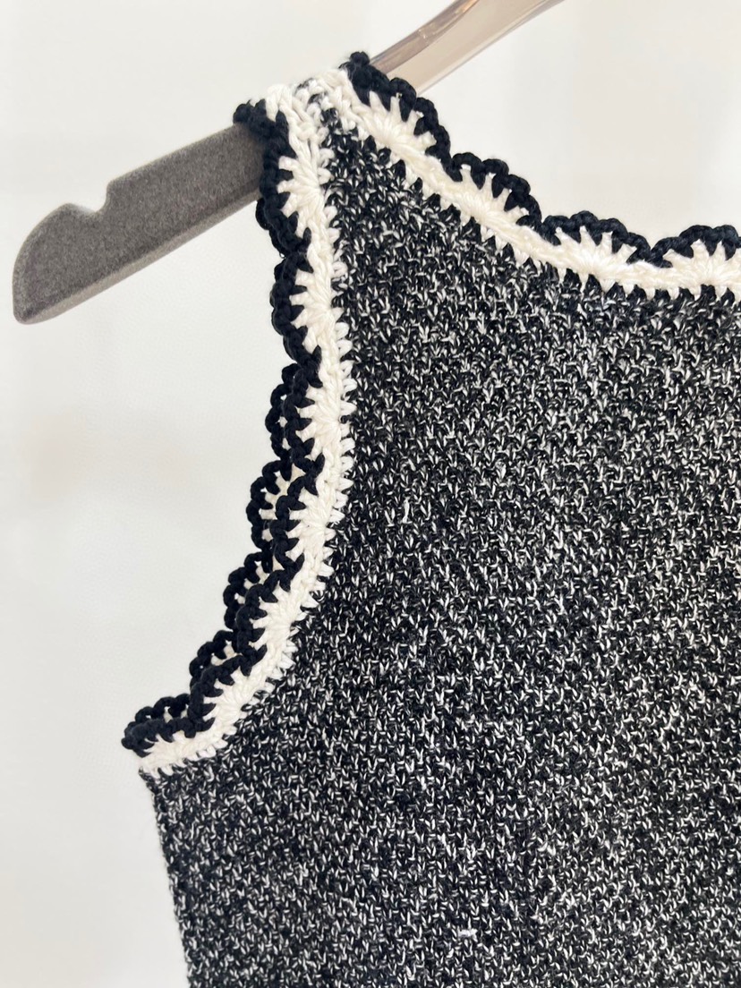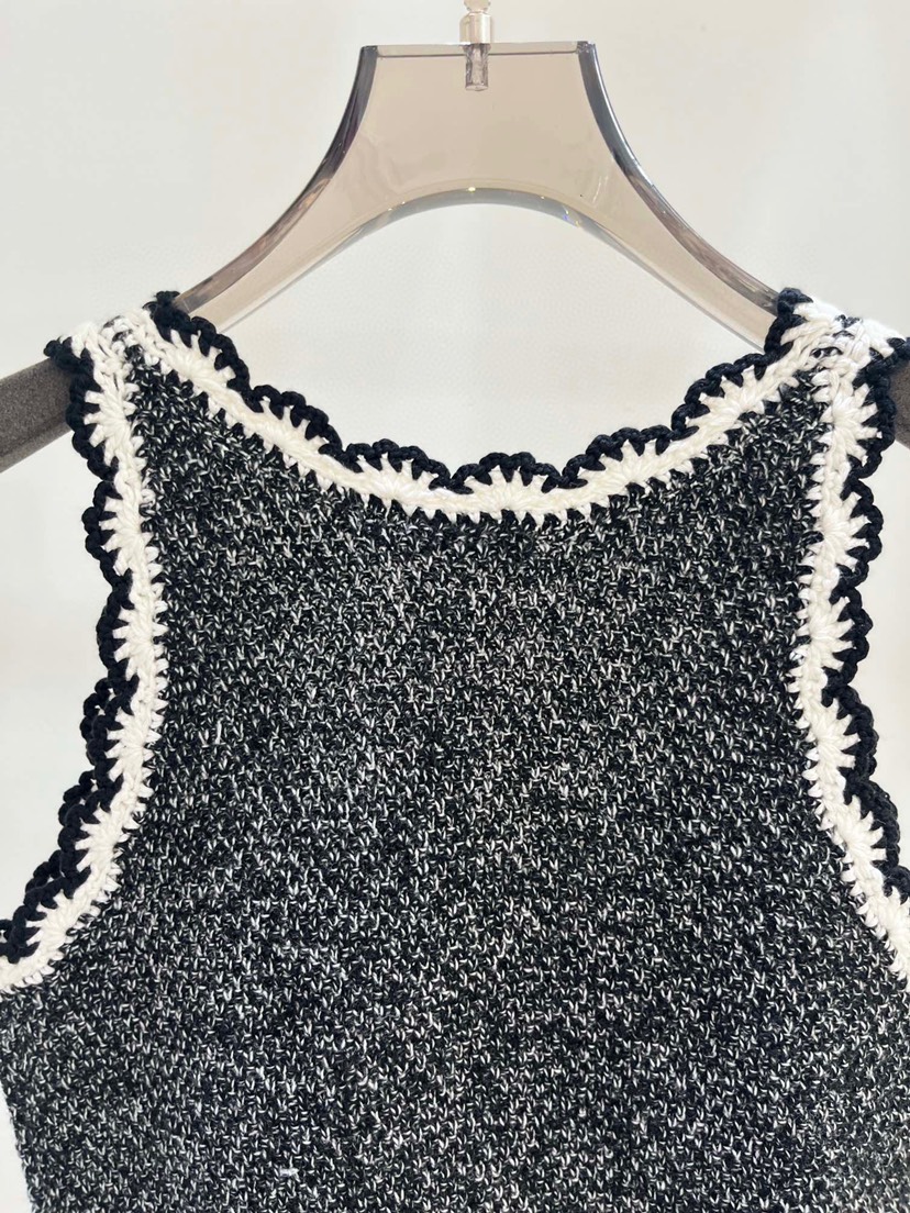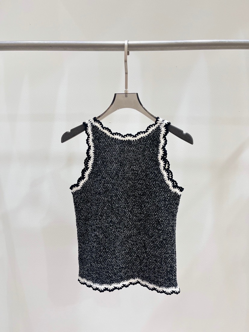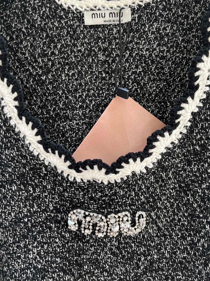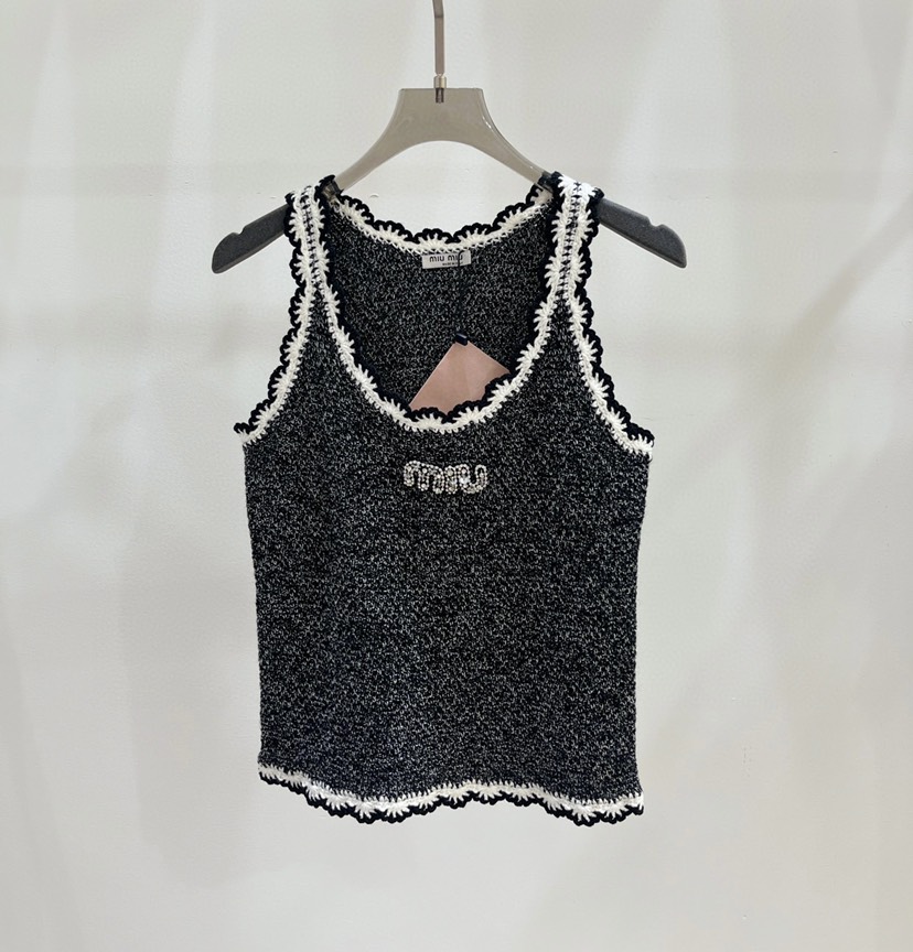 New miu Miu 23 Summer New Water Diamond Letter Lace Knit Tank Top