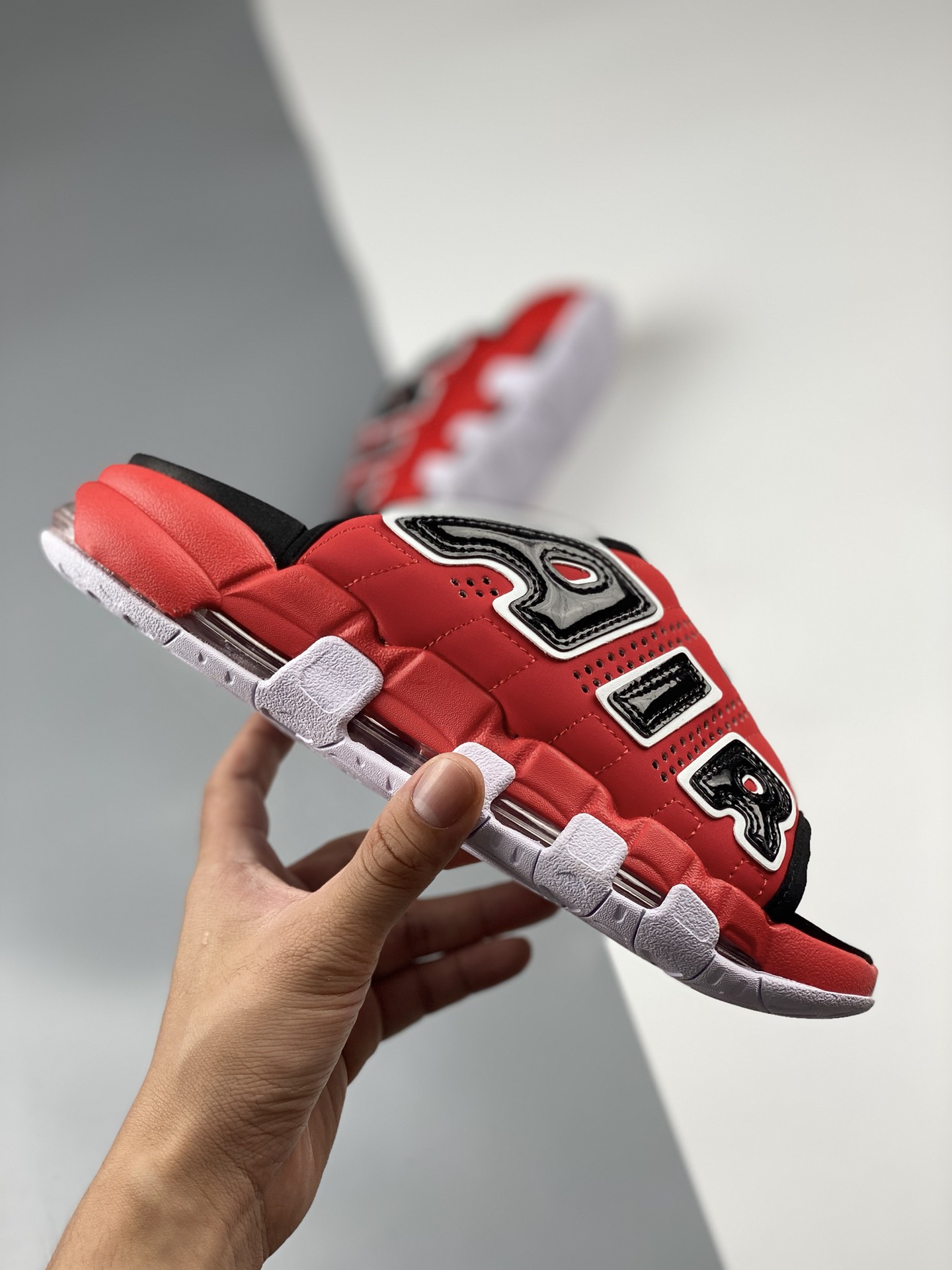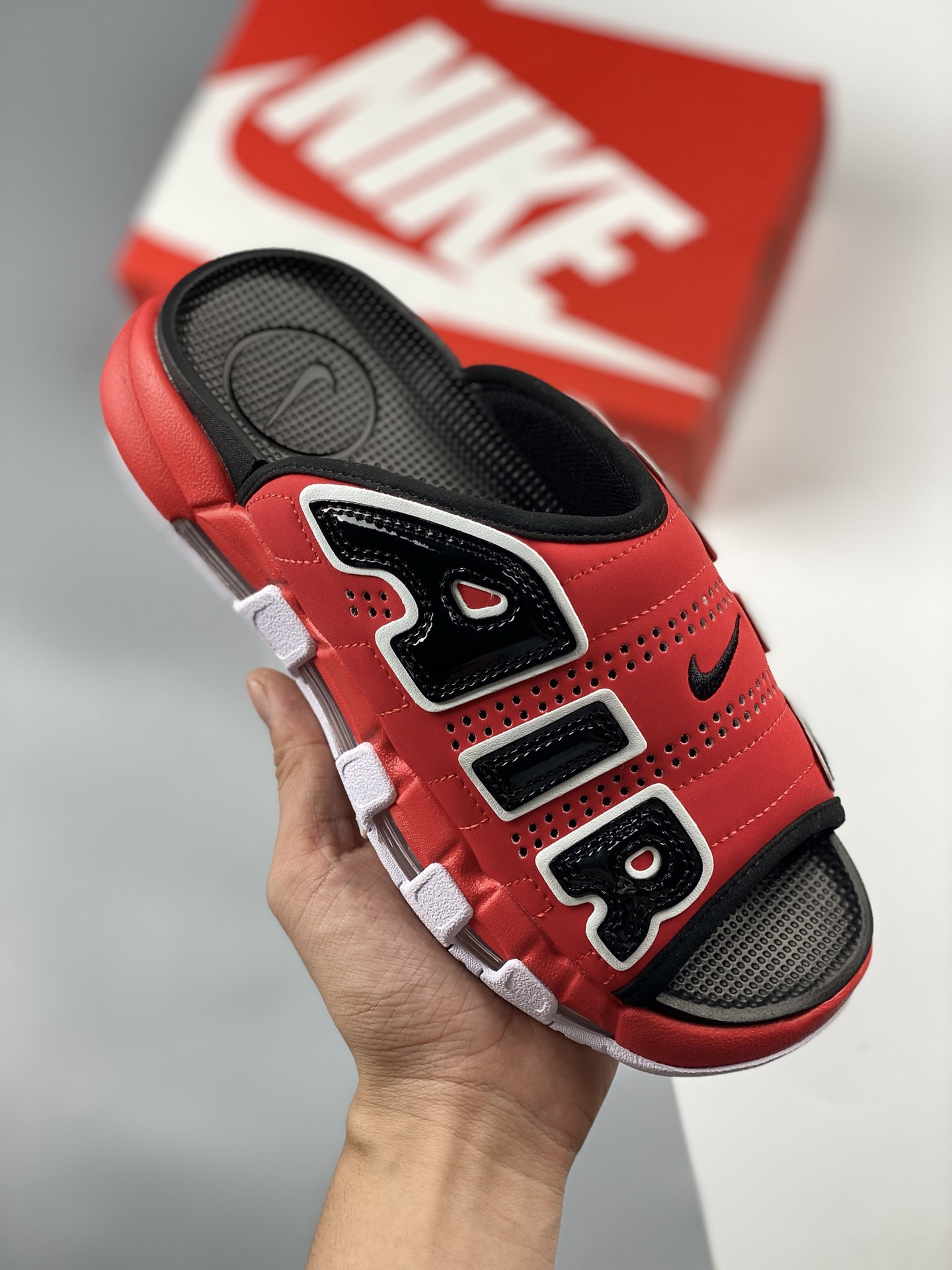 Nike air more uptempo slide summer single piece leather pong slippers are inspired by the popular graffiti culture on the streets. The overall design style is exaggerated and charming, with a pair of huge letters "air" engraved on both sides of the thick and textured leather upper. The unique and cool appearance is stunning. Product number: fn3437-160size: 36 37.5 38.5 40 41 42.5 44 45 46 47.5