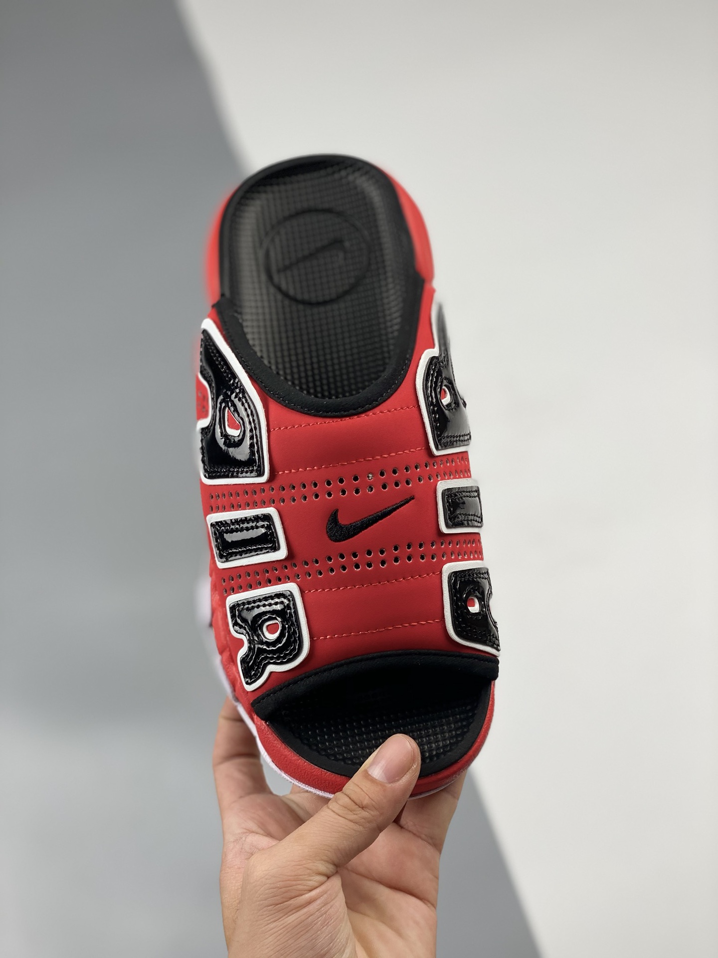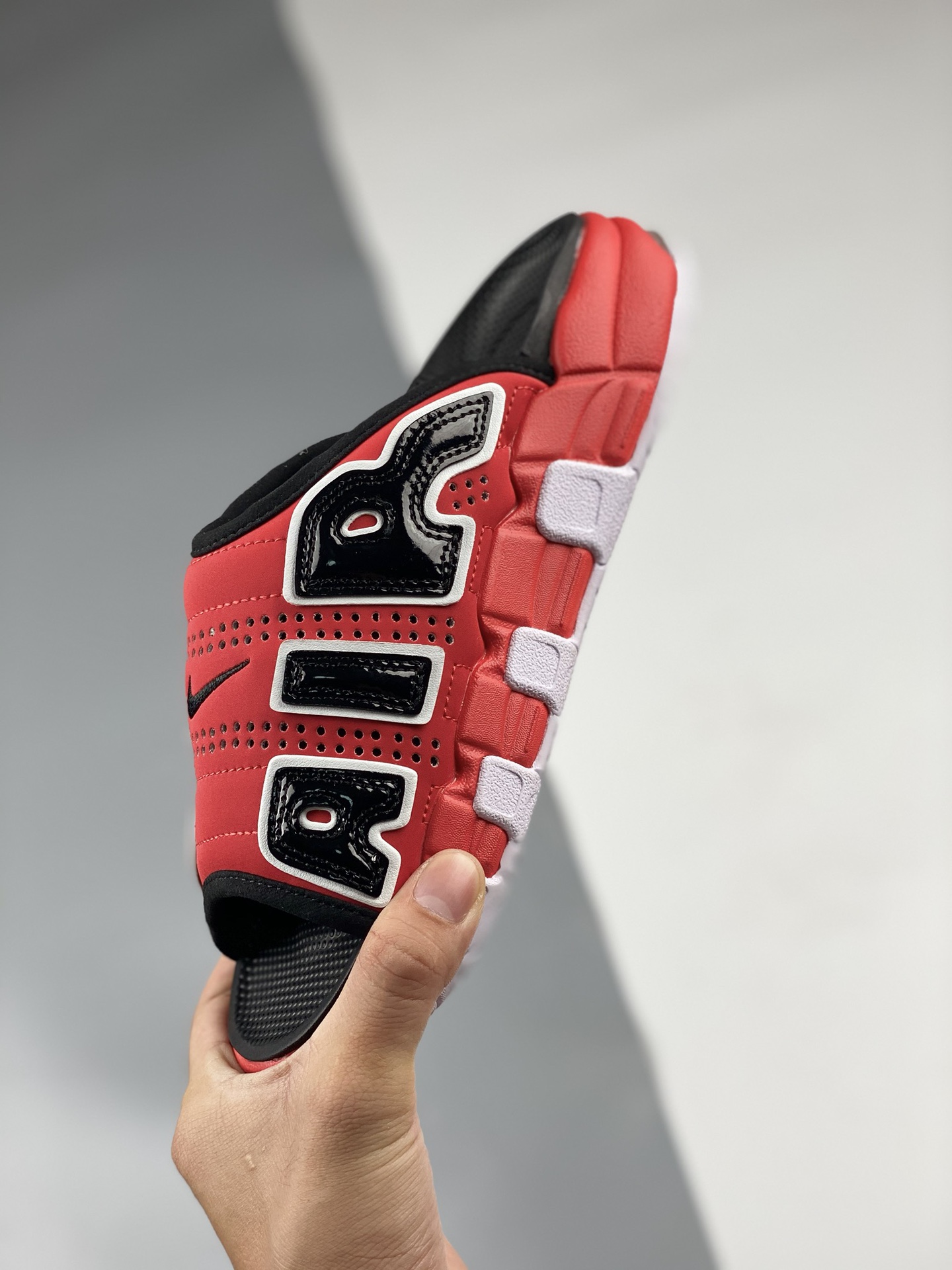 DetailNike air more uptempo slide summer single piece leather pong slippers are inspired by the popular graffiti culture on the streets. The overall design style is exaggerated and charming, with a pair of huge letters "air" engraved on both sides of the thick and textured leather upper. The unique and cool appearance is stunning. Product number: fn3437-160size: 36 37.5 38.5 40 41 42.5 44 45 46 47.5