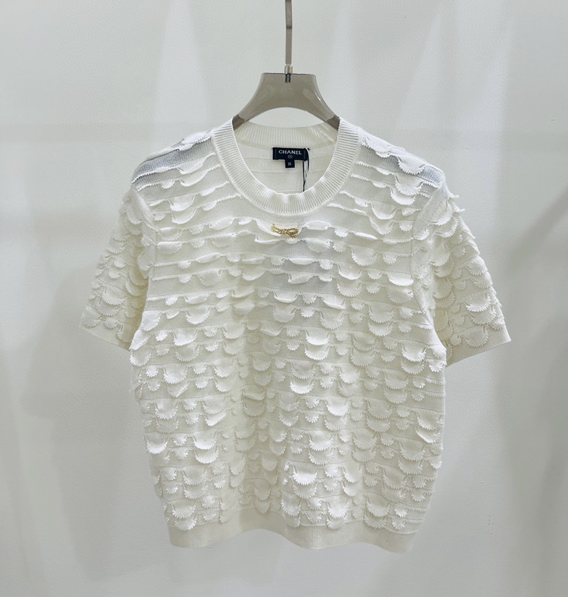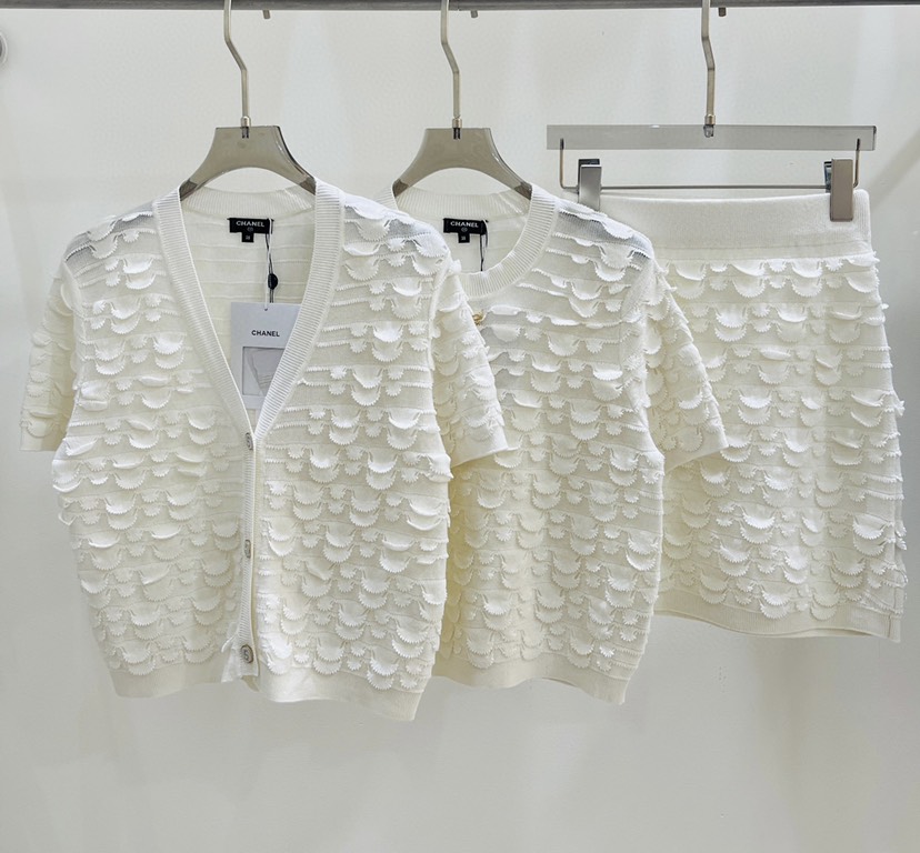 🔥🔥🔥 Chanel23 Summer New Simple Fragrance Style Reduced Age Fish Scale Knitted Short Sleeve ➕ Half skirt
